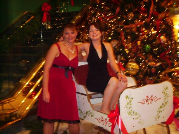 me and joanie in santas sliegh